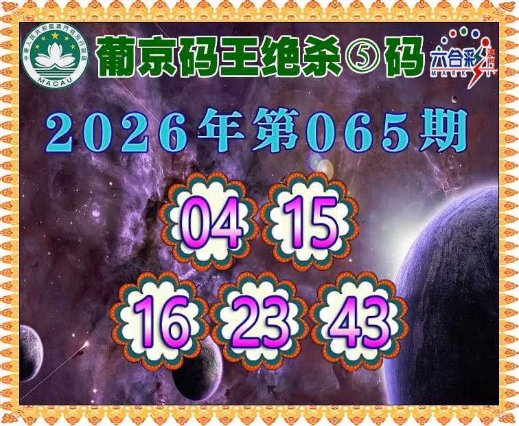 065期: ♦️『葡京码王』 ♦️绝杀⑤码♦️【04.15.16.23.43】开:虎05准