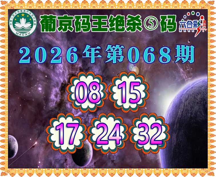 068期: ♦️『葡京码王』 ♦️绝杀⑤码♦️【08.15.17.24.32】开:猴23准