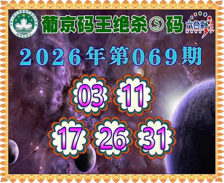 069期: ♦️『葡京码王』 ♦️绝杀⑤码♦️【03.11.17.26.31】开:羊24准