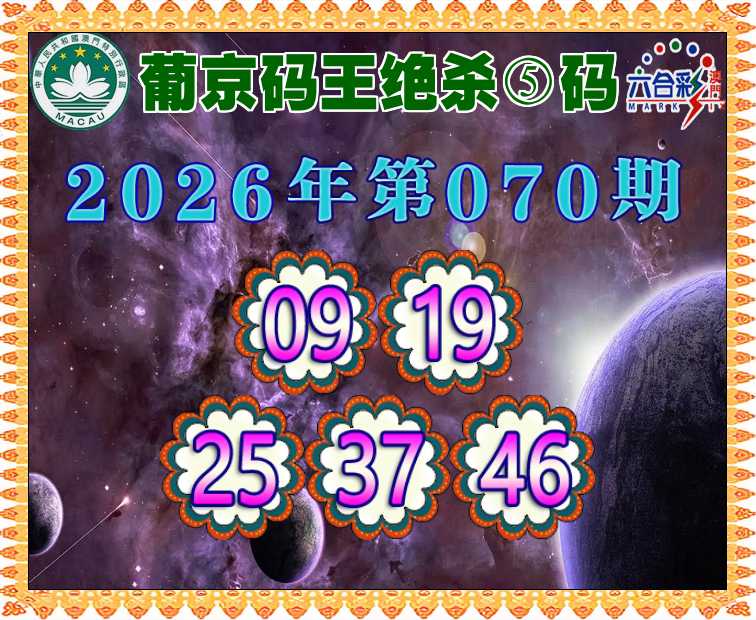 070期: ♦️『葡京码王』 ♦️绝杀⑤码♦️【09.19.25.37.46】开:马25错