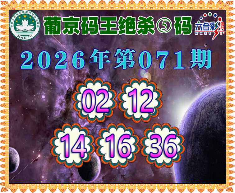 071期: ♦️『葡京码王』 ♦️绝杀⑤码♦️【02.12.14.16.36】开:00准