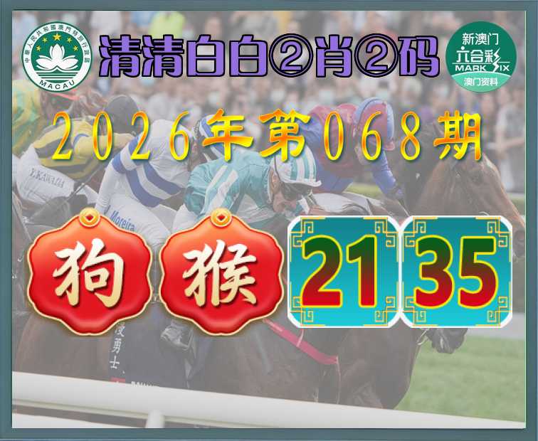 068期:『清清白白』 ♣️②肖②码 ♣️【狗猴】【21.35】开:猴23准