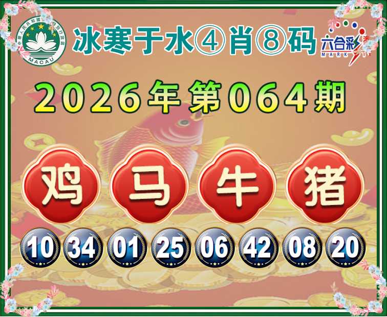 064期: 🤘『冰寒于水』 🤘④肖⑧码🤘【鸡马牛猪】开:牛18准