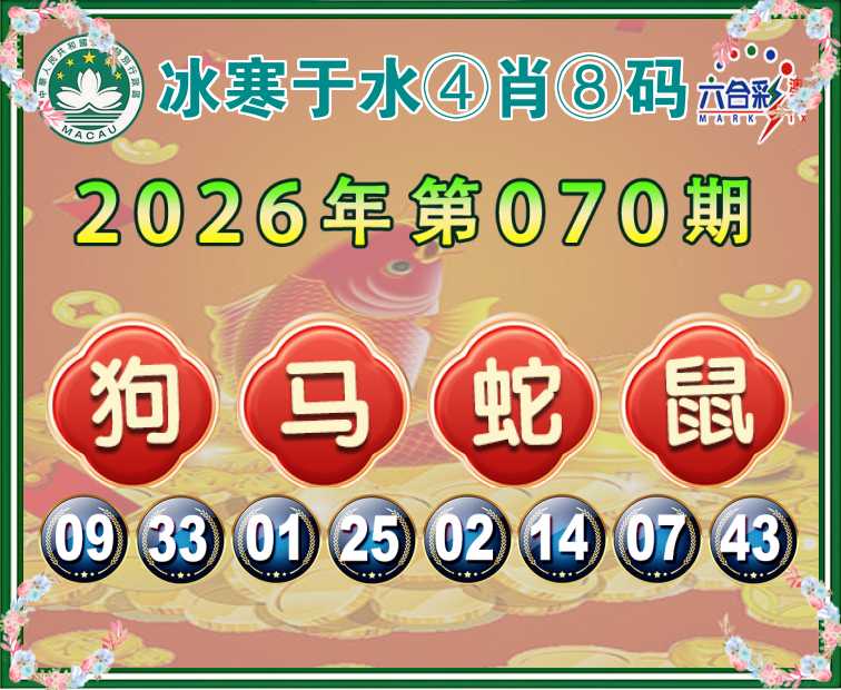 070期: 🤘『冰寒于水』 🤘④肖⑧码🤘【狗马蛇鼠】开:马25准