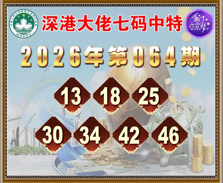 064期:〖深港大佬〗 ✌️七码中特✌️【13.18.25.30.34.42.46】开:18准