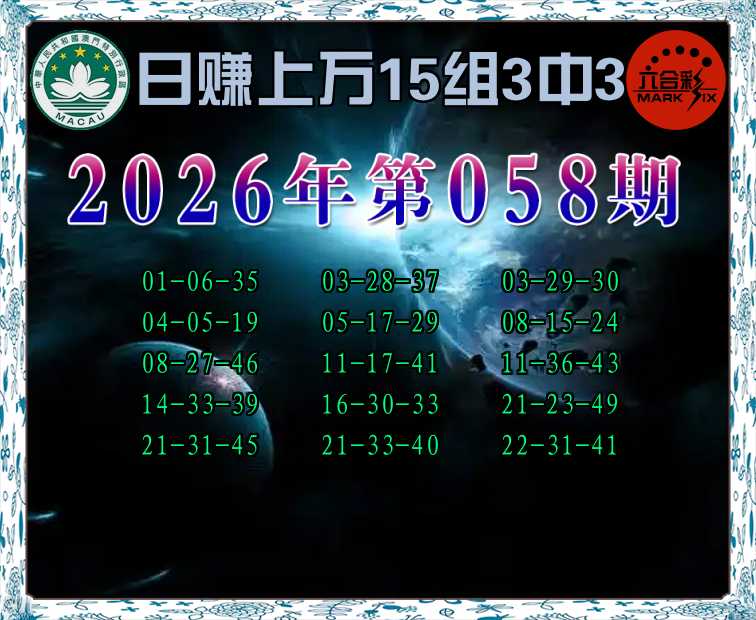 058期:《日赚上万》 🥼15组3中3🥼
