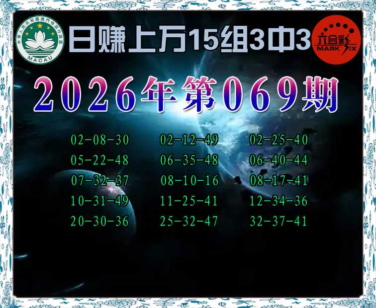 069期:《日赚上万》 🥼15组3中3🥼